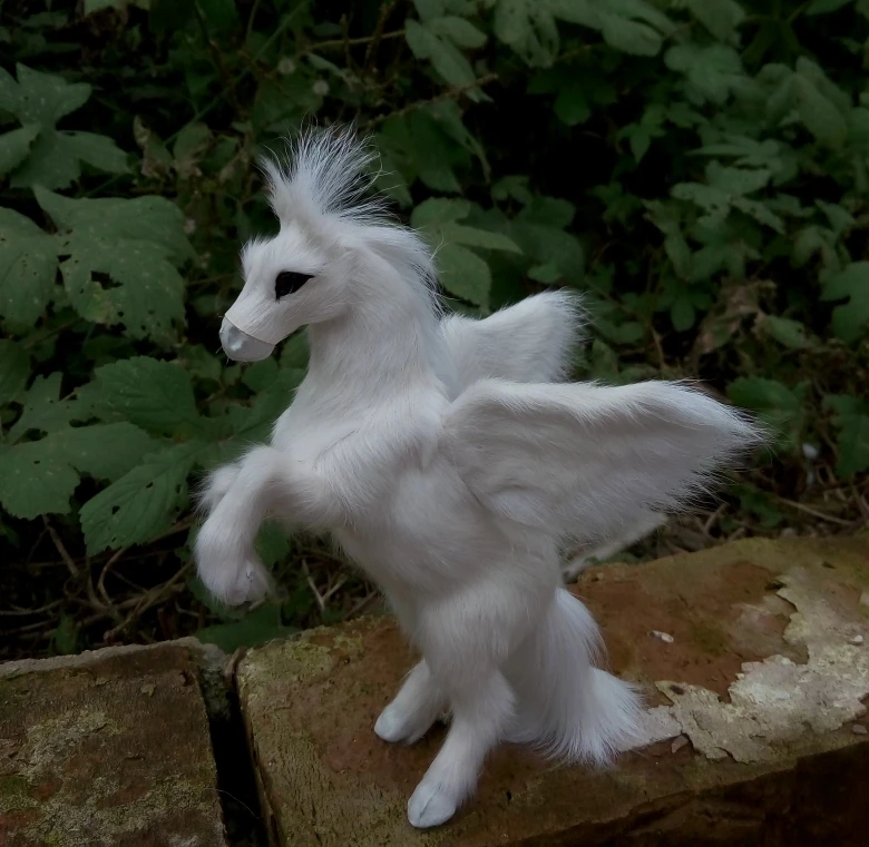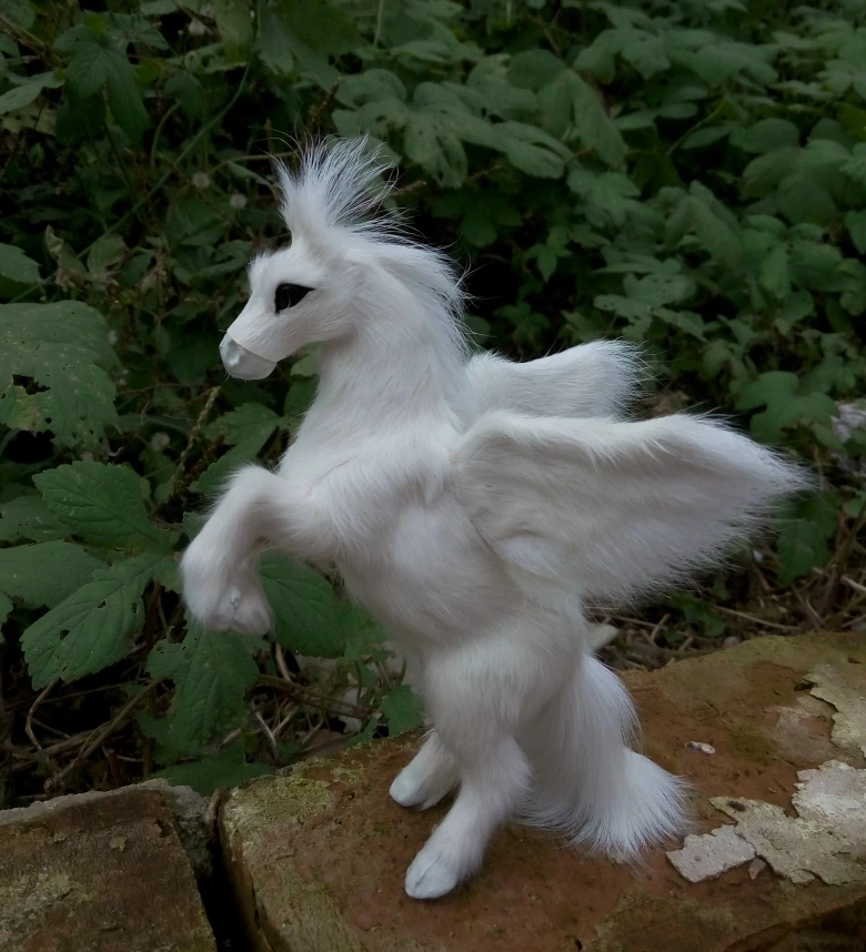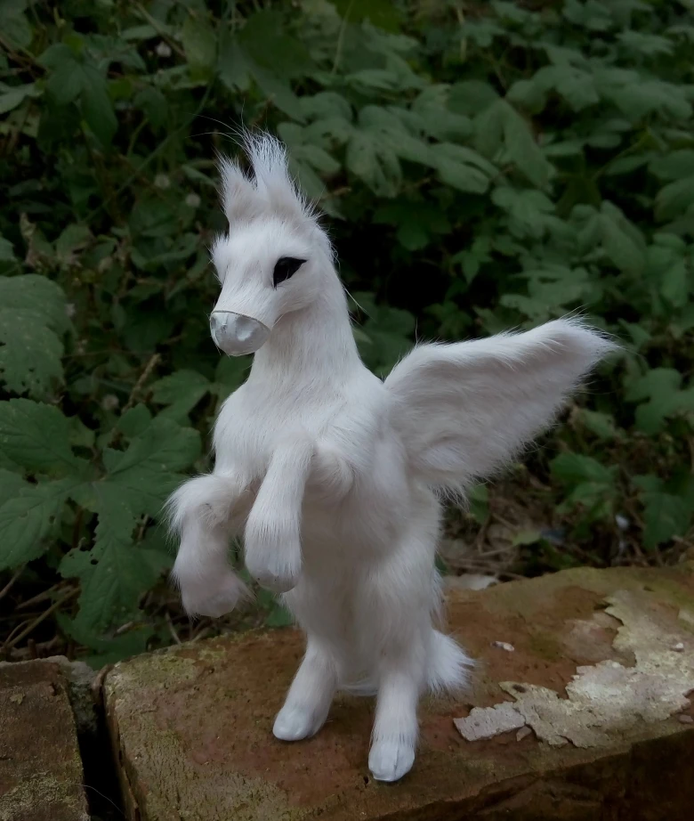 17x12cm white horse with wings hard modelpolyethylene&real furs handicraft Figurines&Miniatures hom