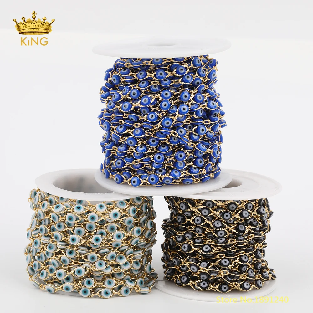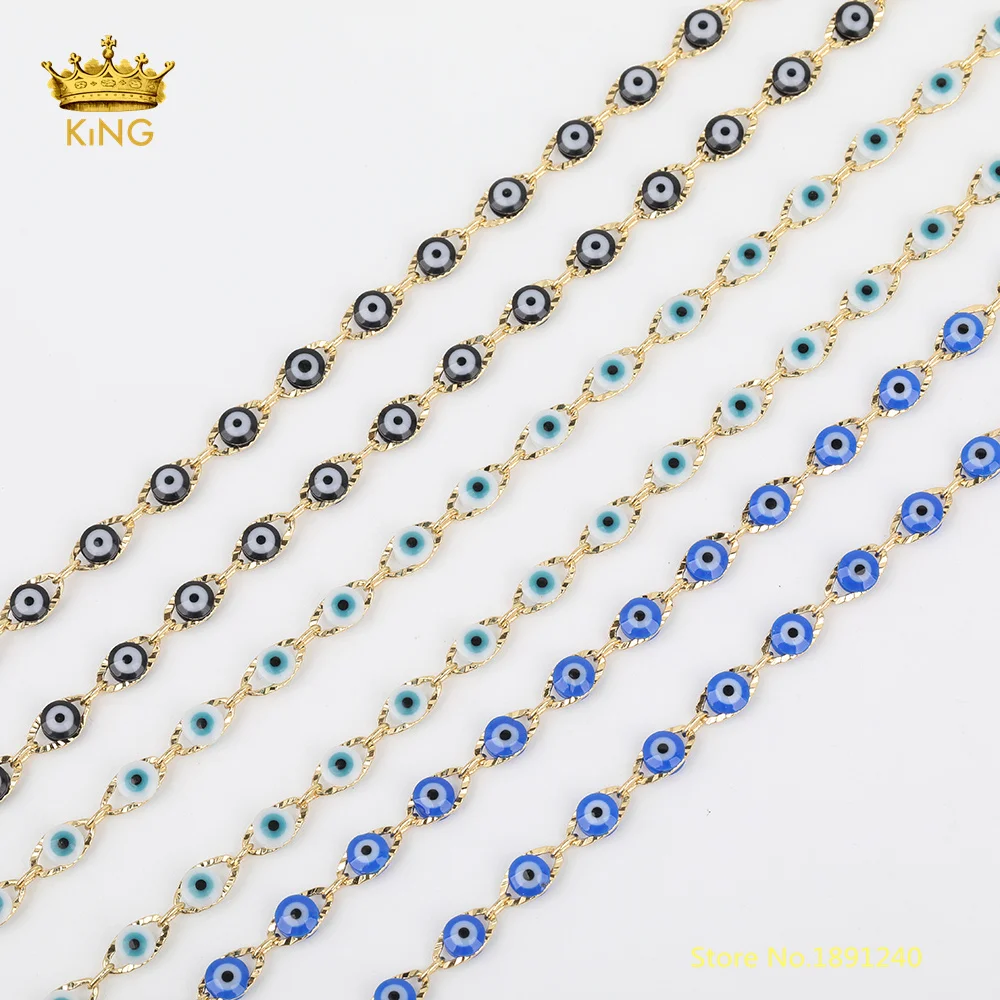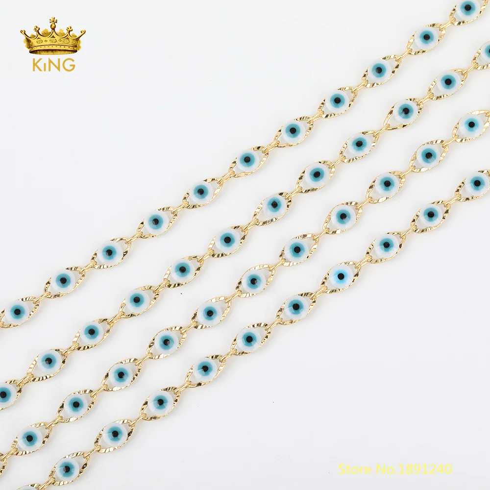 BEST QUALITY 5meters 4mm Evil Eye Enamel ChainsGold Horse Eye Charms Copper Evil Eye Coin Enamel Beaded Chain Fi