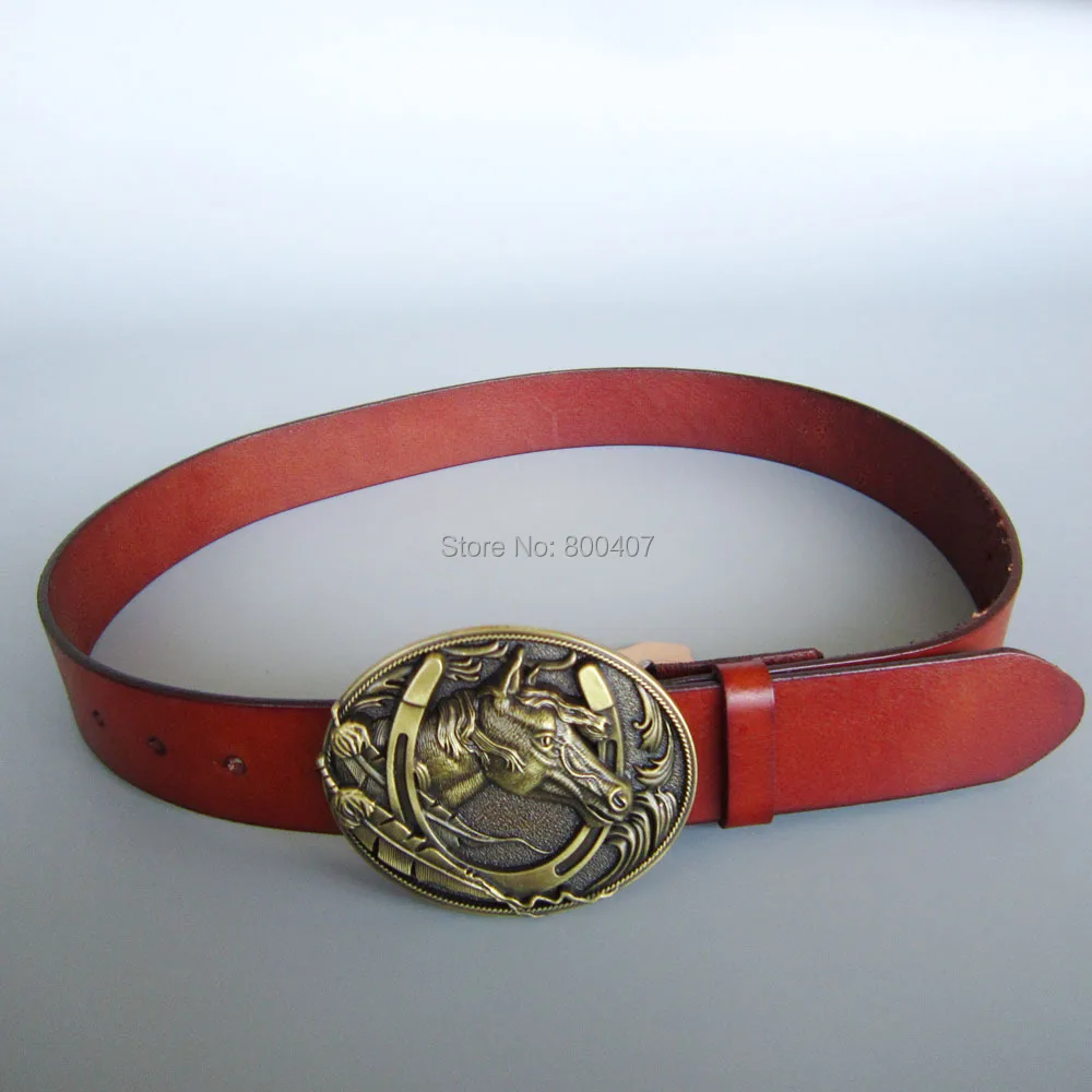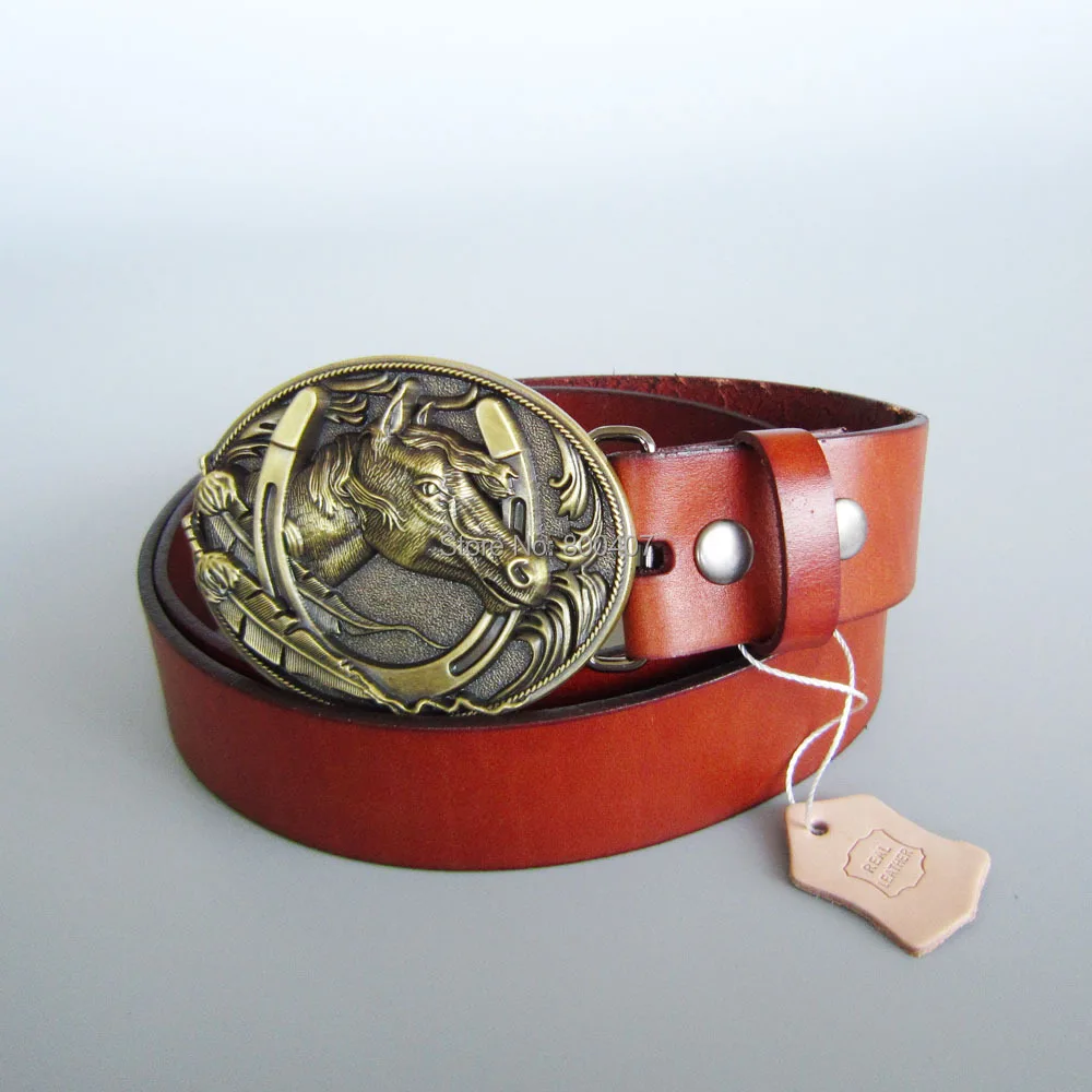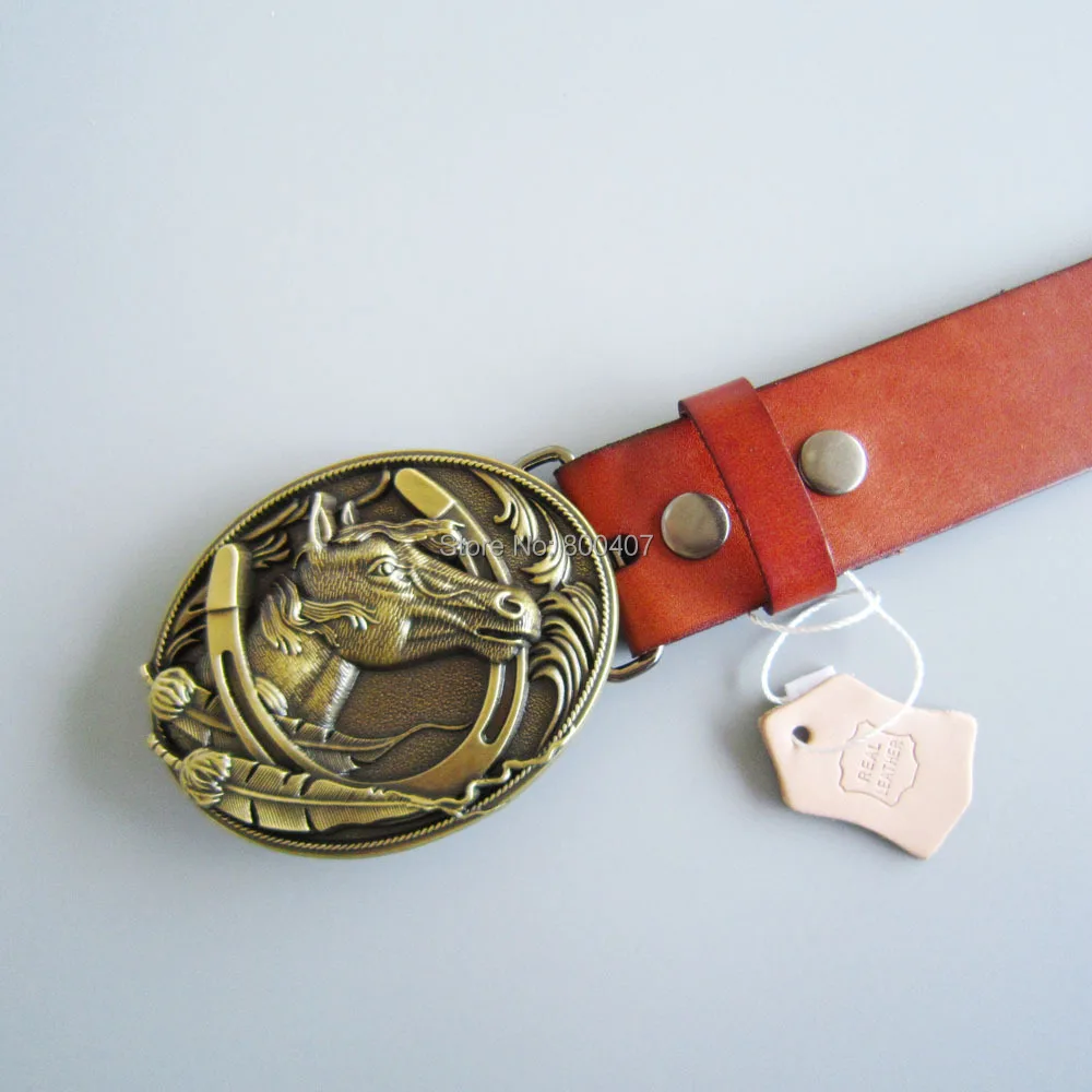 Best Quality Bronze Plated Horse HorseShoe Oval Belt Buckle W Brown Genuine Leather Belt Gurtel Boucle de ceintu