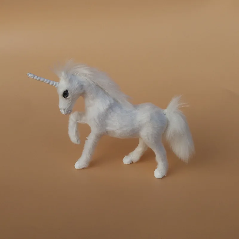 Best Quality cute small simulation white unicorn toy lovely resin&fur unicorn doll gift about 15x11cm 1005
