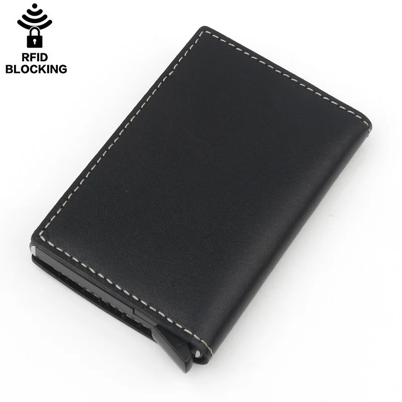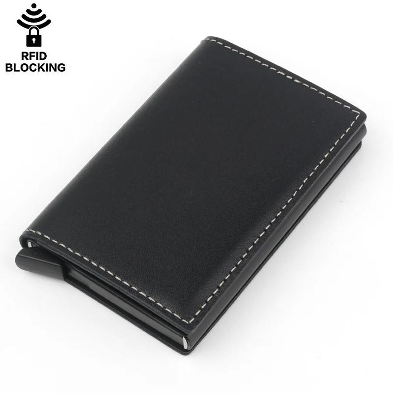 HIGH QUALITY Fashion Man Rfid Blocking Credit Card Holder Aluminium Metal Box bank Card protector Crazy Horse Ge
