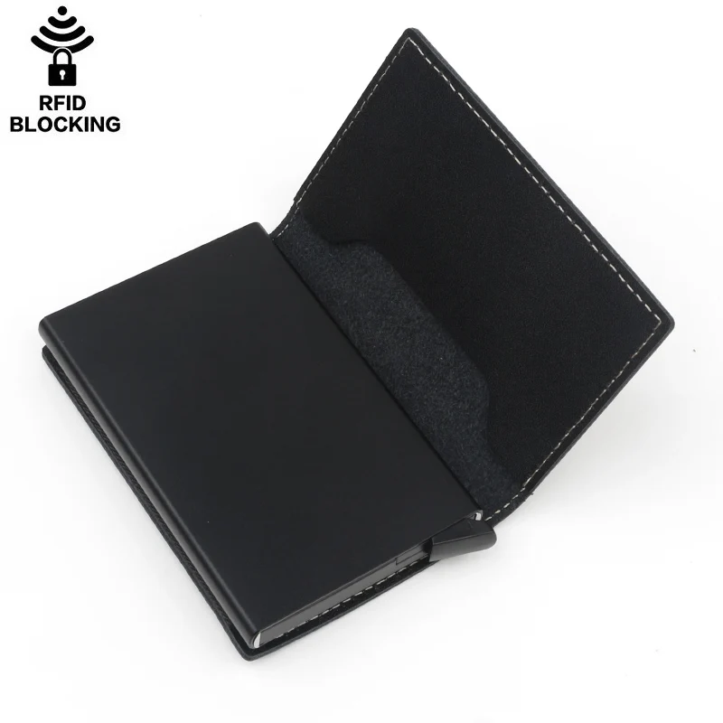 Fashion Man Rfid Blocking Credit Card Holder Aluminium Metal Box bank Card protector Crazy Horse Ge