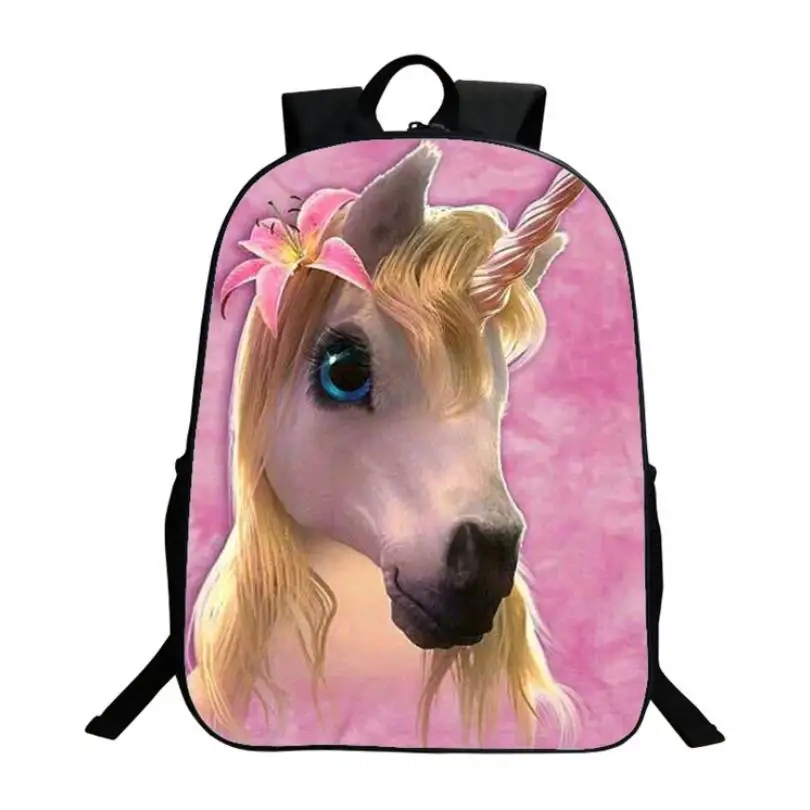Hot Polyester 16-Inches Printing Animal Horse 3D Unicorn Women Schoolbag Backpacks for Teenage Girl