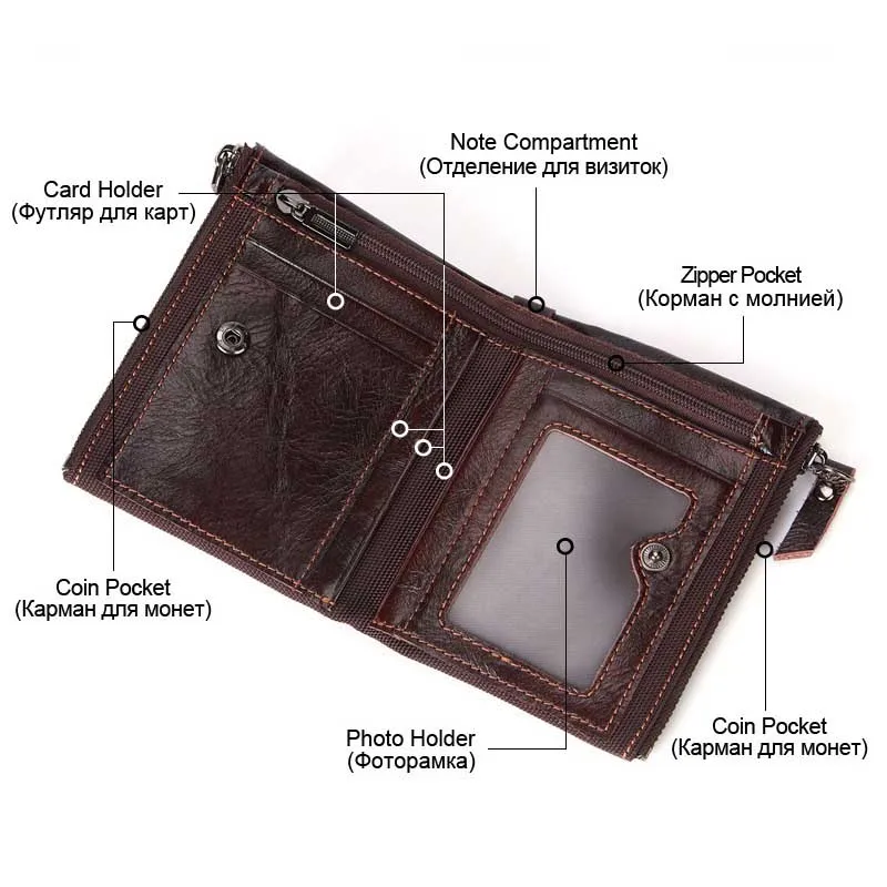 BEST QUALITY LAZYLIFE Crazy Horse Genuine Leather Men Wallets Credit Business Card Holders Double Zipper Cowhide