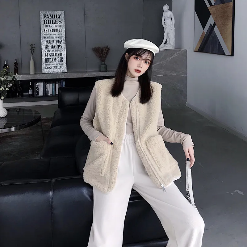 Photo Shoot 9191 # Korean-style New Style CHIC Simple Versatile Network Red Fire Faux Lambswool V-n