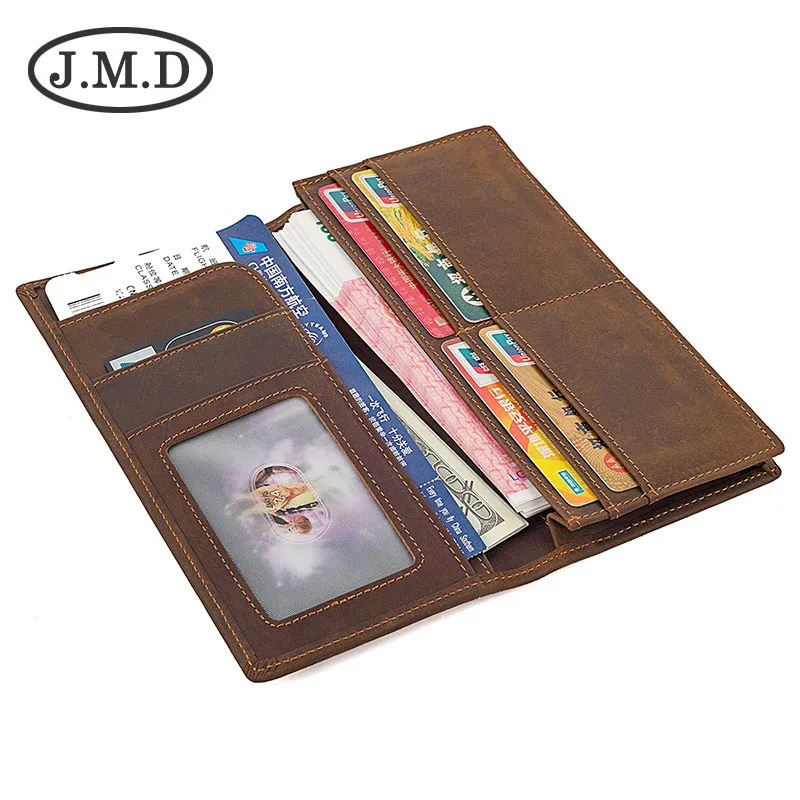 BEST SELLER New RFID wallet wholesale leather long retro wallet super cool crazy horse boarding pass wallet