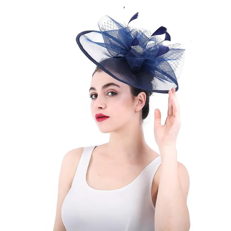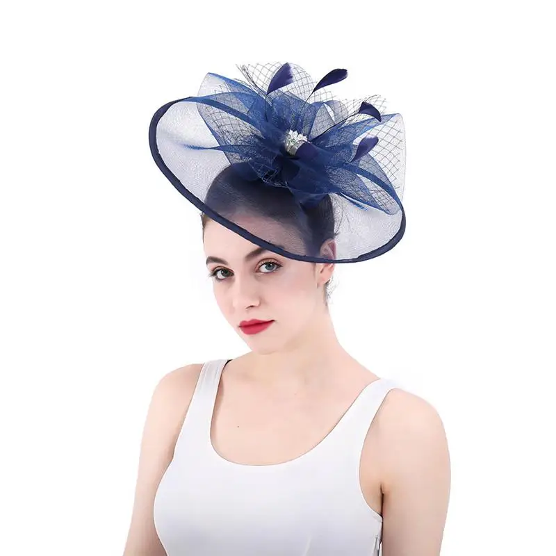 BEST SELLER Western Style Fashion Simple Bridal Big Hat Mesh Feather Beading Flower Headpiece Wedding Banquet H