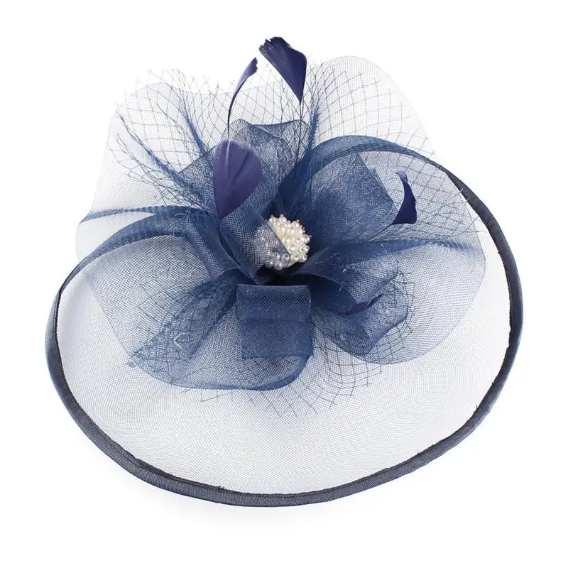 Western Style Fashion Simple Bridal Big Hat Mesh Feather Beading Flower Headpiece Wedding Banquet H