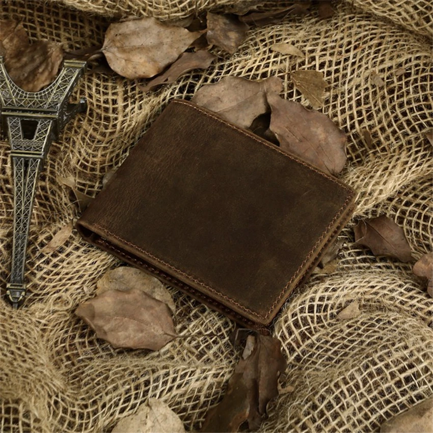 Genuine Crazy Horse Cowhide Leather Men Wallets Fashion Purse With Card Holder Vintage Short Wallet