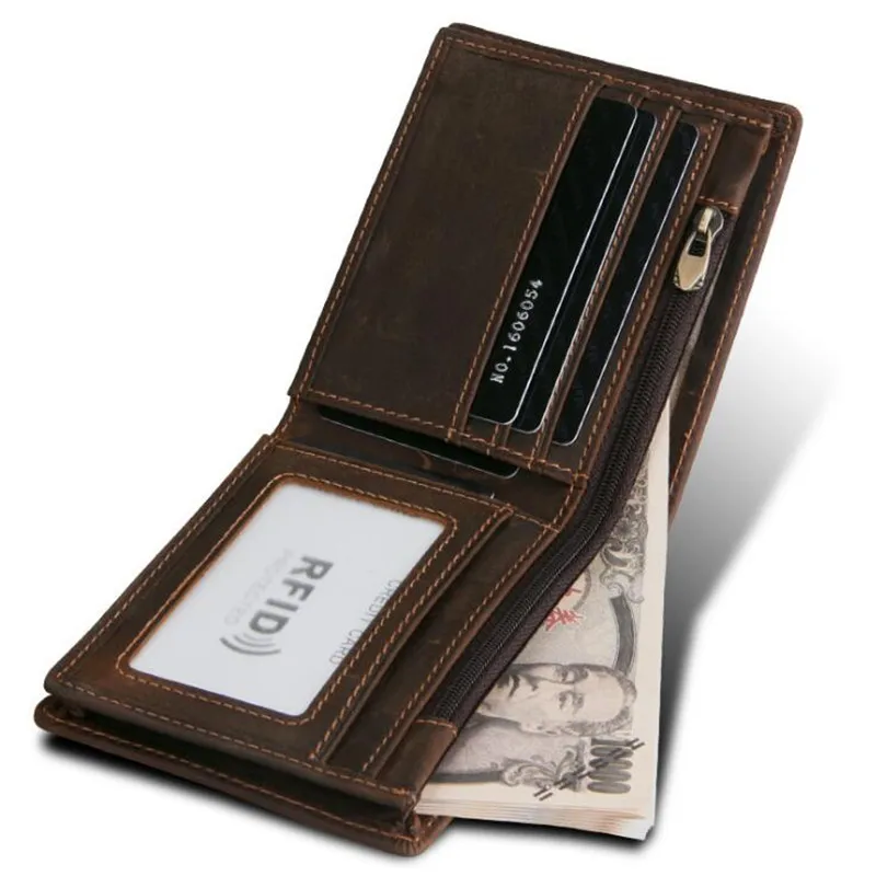 Genuine Leather Wallets Men Wallets Male Purse Hasp Short Card Holder Wallet Clutch Zipper Mens Coi