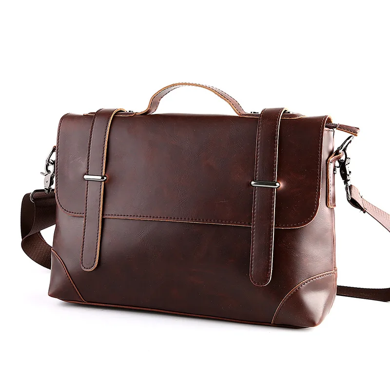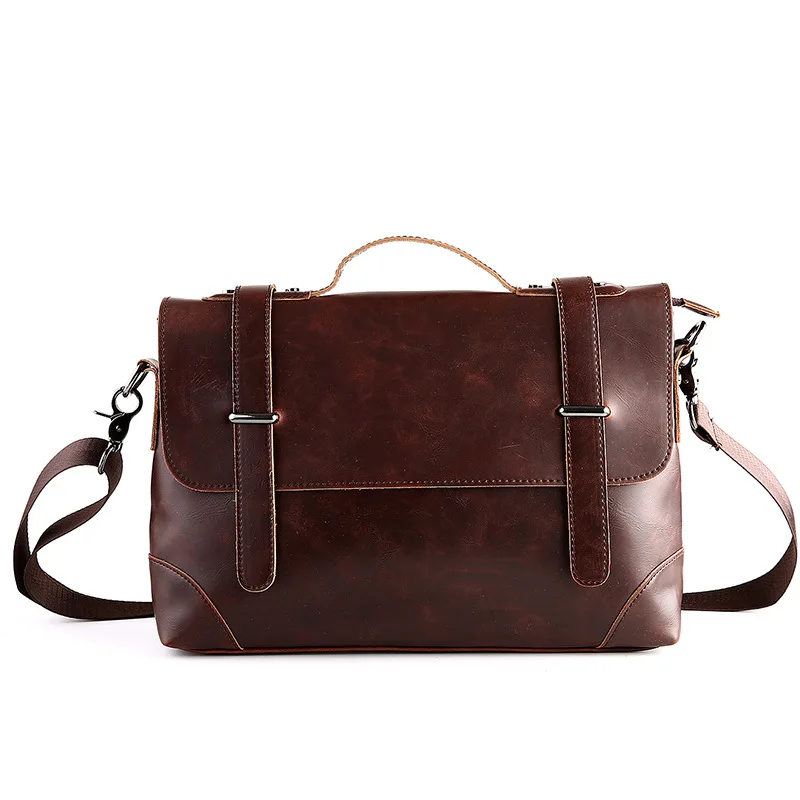 HIGH QUALITY Men's Vintage Real Crazy Horse Leather Briefcase Messenger Shoulder Portfolio Laptop Bag Case Offic