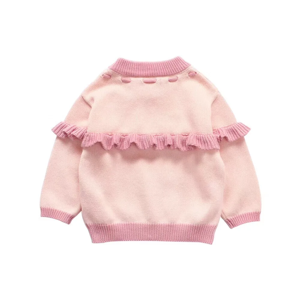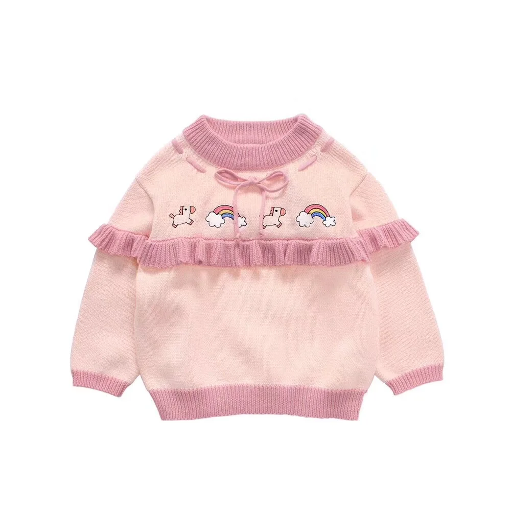 Best baby girls sweater pink color embroidered horse ruffles sweet toddler infant knitted tops