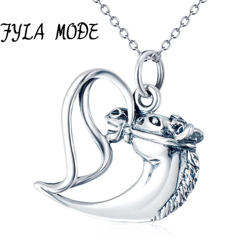 FYLA MODE 925 Sterling Silver Necklace Jewelry Collier Heart Horse Head Pendant Necklace Fashion Wo