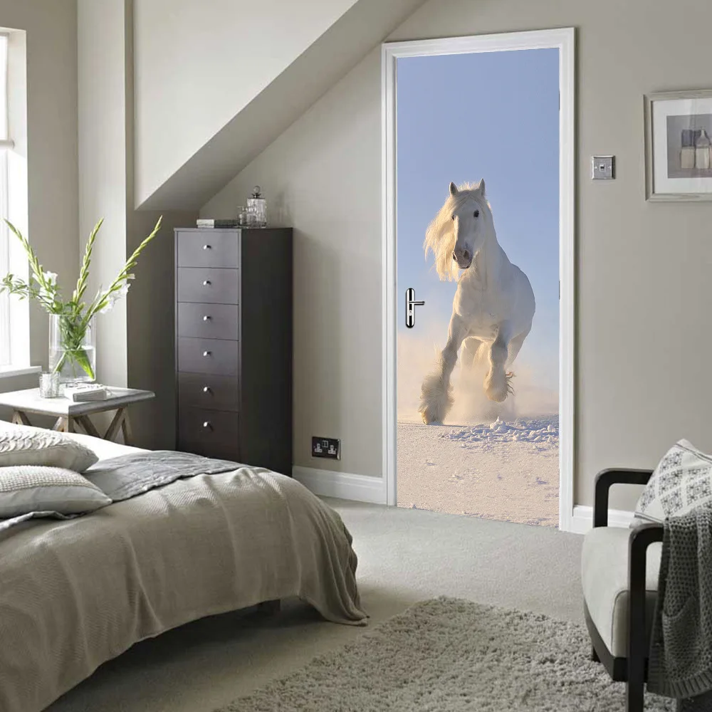 Amazing running horse door wall sticker self-adhesive wall picture for living room home decoration