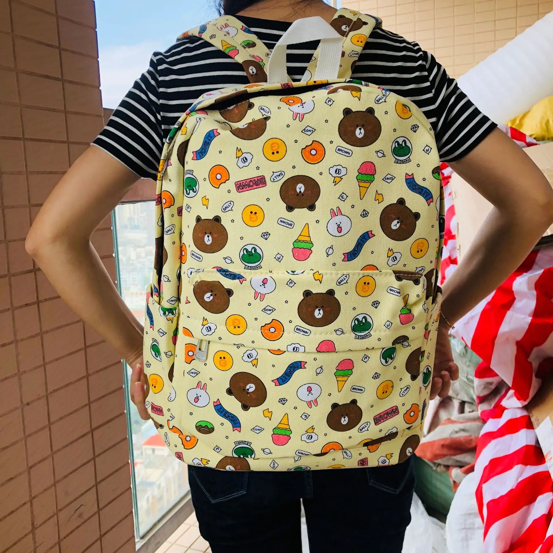 Hot Sale 40*29*15cm Brown Bear Cony Rabbit Canvas Backpack Travel Plush Kitty Bag