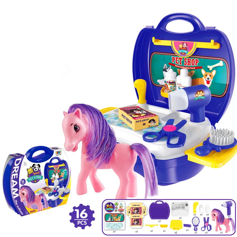 Children's Simulation Kids Girls Pretend Play Pet Shop Horse Makeup Dresser Table Furniture Toys Se
